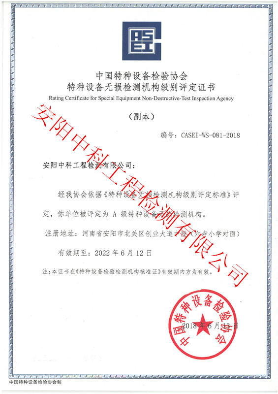 無損檢測(cè)機(jī)構(gòu)A級(jí)